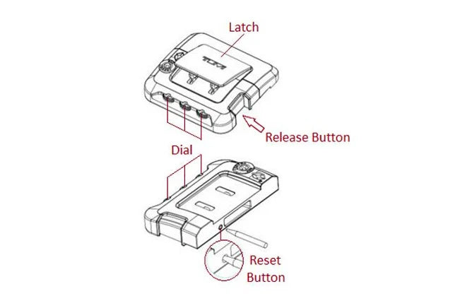 Comienza asegurándote de que cada dígito esté configurado en el código de inicio preestablecido en 0-0-0. Presiona el botón de liberación en el lateral para abrir la cerradura.