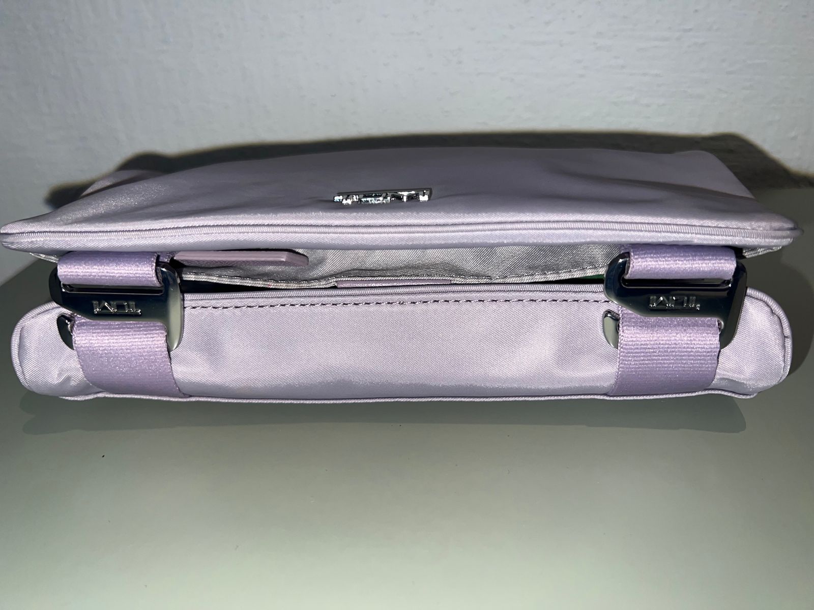 Cuelga súper bien de los cintos que tienen por dentro las nuevas mochilas, pero algo que no esperaba y me gustó mucho es que también lo puedes enrollar y cerrar; por si lo quieres usar diferente o trasladar a una maleta que no sea Tumi.